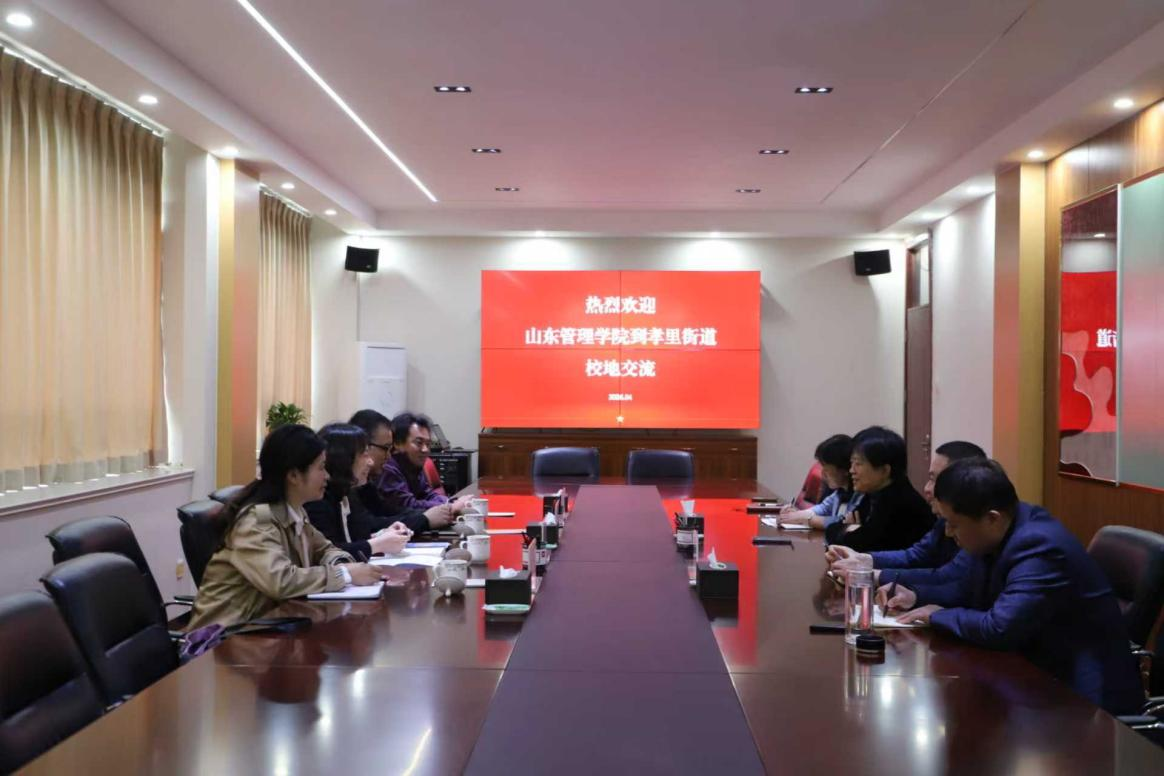 随后,山东管理学院创新创业学院院长商漱莹对孝里街道作为孝文化之乡的独特文化特色,以及在黄河流域高质量发展背景下滩区迁建所取得的丰硕成果,表达了由衷赞叹;同时,对街道在产业发展与乡村振兴领域取得的显著成效给予了高度评价。她详细介绍了学校的办学特色、学科优势、人才培养模式及创新创业教育情况,重点介绍了学校在电商、文旅及文创等领域的创新创业实践。她表示,此次到访的目的在于深入了解孝里街道产业发展的实际情况,找准校地合作的结合点与发力点,推动学院的人才、技术资源与街道产业需求精准对接,共同助力校地创新创业人才的培养和实践。